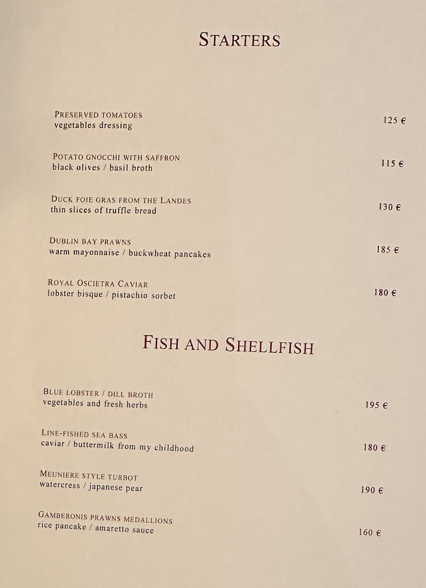 Nestled in the heart of Paris at the prestigious Four Seasons George V, Le Cinq is a three-Michelin-star haven of luxury dining. The menu is a celebration of French gastronomy, expertly crafted to tantalize the senses. Start your culinary journey with exquisite entrées, such as the delectable Gratinée à l'Oignon or the opulent Salade de Homard Grillé. The seafood selection features refined dishes like Bar de Ligne paired with caviar, showcasing the artistry and freshness Le Cinq is renowned for.